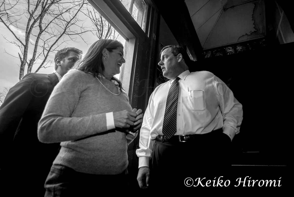 July 2, 2015 Nashua, NH USA: New Jersey Governor and Presidential candidate Chris Christie campaigning with his wife Mary Pat Foster at Martha's Exchange in Nashua, NH USA.
